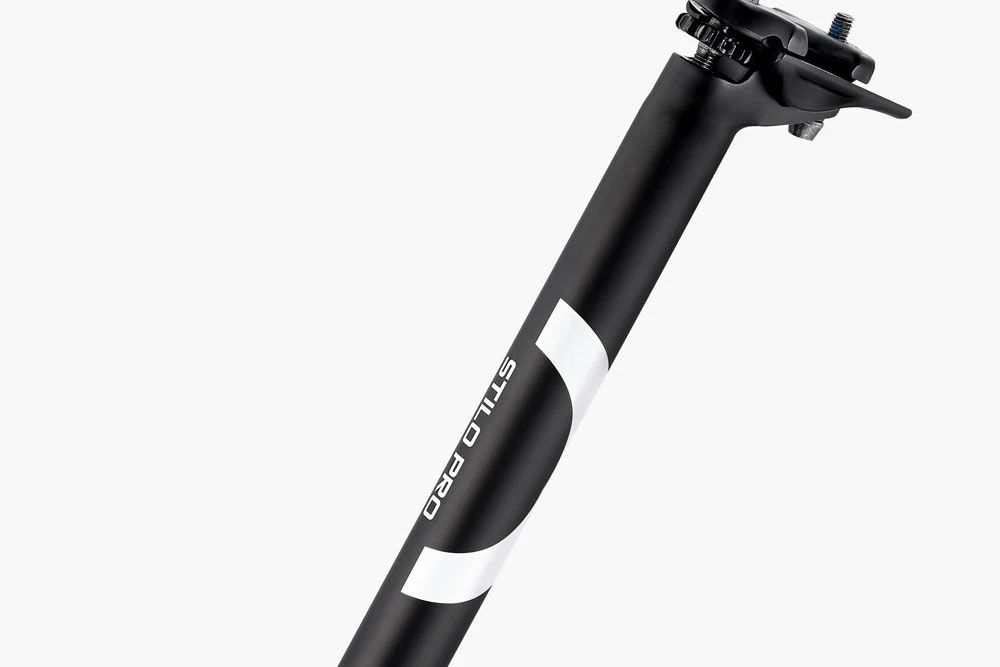 De Stilo is een geheel nieuwe, universele zadelpen met een setback van 25 mm. Het Pro-model is gefabriceerd in zeer sterke AL 7075 T73-legering. Bevestigingsbouten voor de zadelpen zijn fore-aft geplaatst; een duimwiel op de voorgebogen voorbout zorgt voor een eenvoudige fijnafstelling van det zithoek