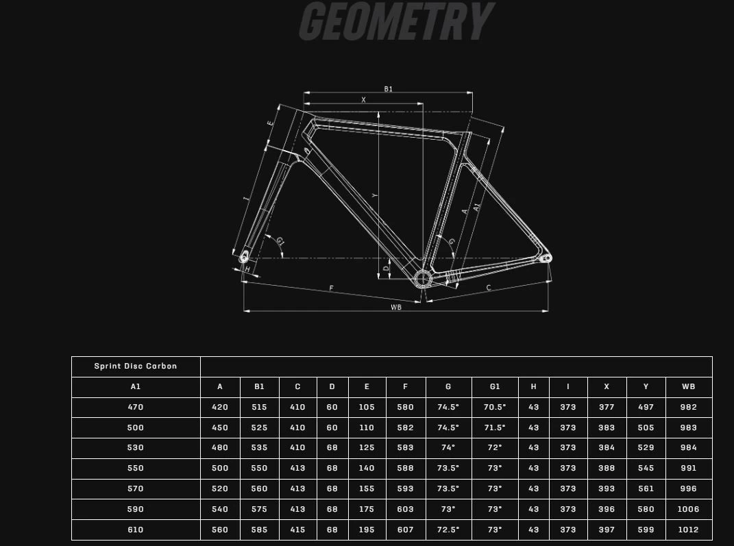 - Frame: Sprint disc carbon monocoque, mechanisch/elektronisch schakelbaar, pressfit 86,5x41mm, 1,4″-1,1,1/8″ HT, geïntegreerde zadelklem, volledige carbon dropout, Flat Mount, steekas 12x142mm, 32mm banden compatibel, maten 47-50-53-55-57-59-61cm