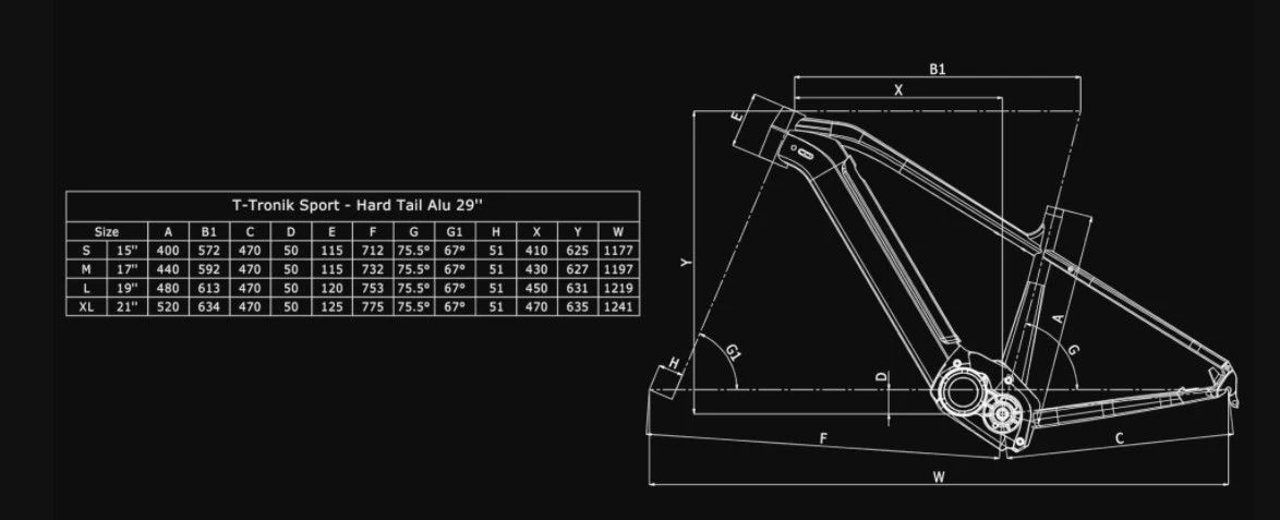 - Frame: T-Tronik Sport HT, alu 6061 triple butted, 1,5″ taps toelopende HT, zadelpen diam. 31,6mm, zadelpenklem diam. 34,9mm, PM 160mm, boost dropout QR 12x141mm, interne kabelgeleiding, maten 38-43-48-53cm
