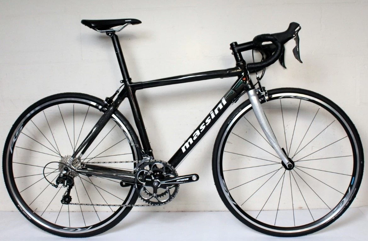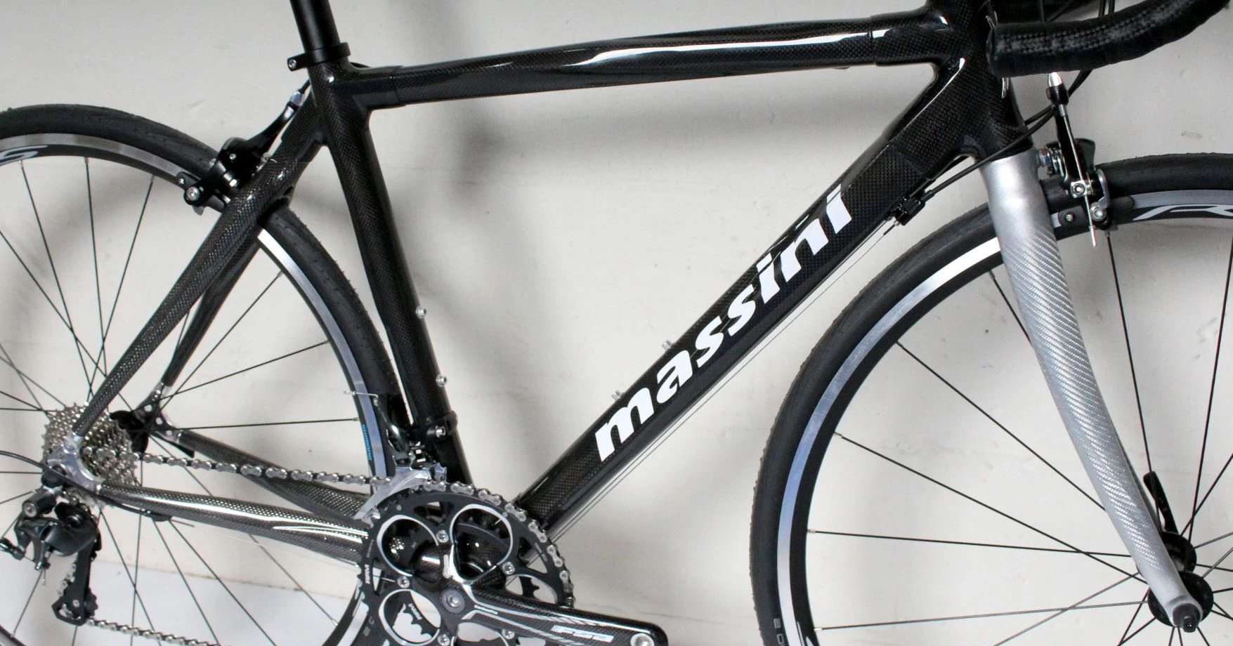Mooie instapper uit eigen huis! Deze Massini Mandato ziet er apart uit met zijn zichtbare specifieke carbon structuur en een opvallende grijze carbon vork. Afgemonteerd met een Shimano Tiagra groepset!