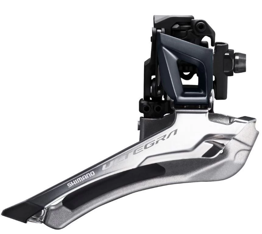 De nieuwe Ultegra R8000 voorderailleur zorgt voor een zeer soepele schakelwerking en schakelt nog wat beter tijdens volle belasting. Gecombineerd met het gerestylde crankstel, is de voorderailleur opnieuw ontworpen om plaats te bieden aan bredere banden alsook een bredere versnellingsapparaat zonder afbreuk te doen aan het schakelen.