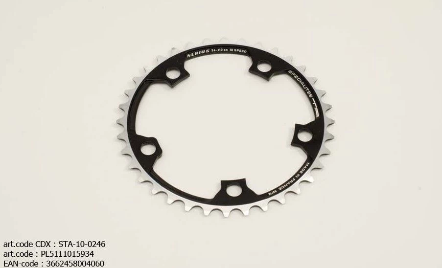 TA Specialites Nerius kettingblad speciaal voor Campagnolo 9 en 10 speed cranks. Een goed en slijtvast alternatief voor de originele bladen. TA maakt haar kettingbladen van het beste 7075 T6 aluminium. De tanden worden gefreesd op traditionele wijze op een draaibank die een veel betere en nauwkeurigere tandvorm maakt dan de meeste andere fabrikanten!