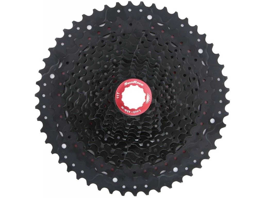 Goedkope en toch lichtgewicht 12-speed cassette van SUNRACE. Het is compatibel met de huidige 10/11-speed MTB bodies van Shimano en SRAM en heeft een vertanding van 11-50 tanden.