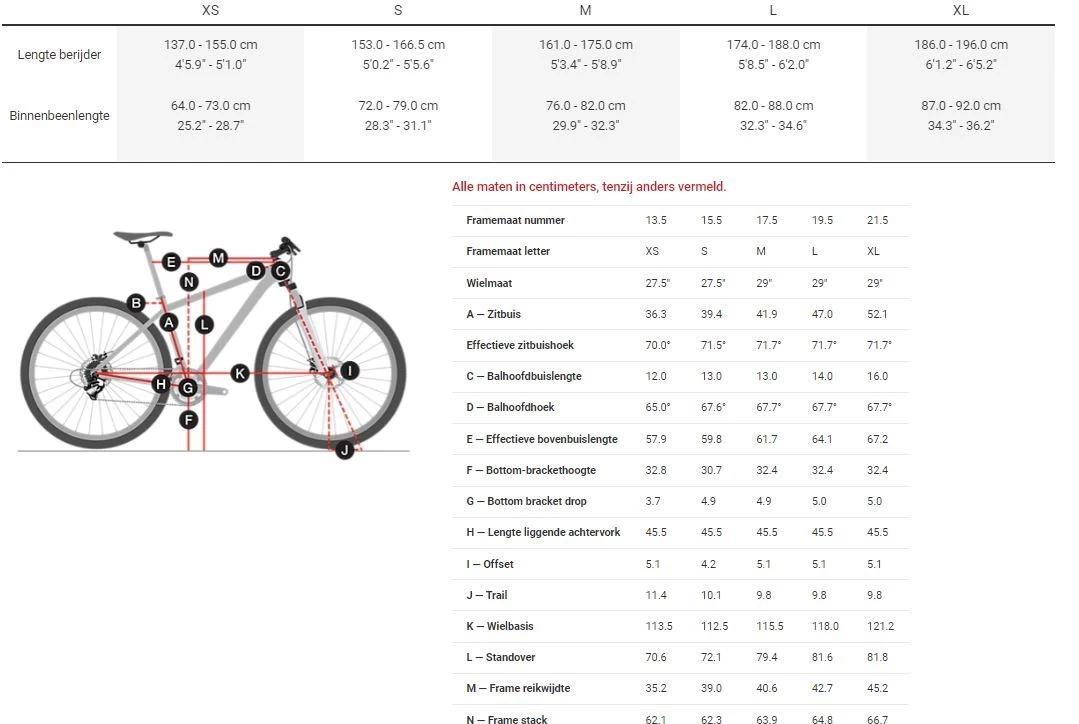 - Maximale bandenmaat: Frame: 29 x 2.60″ of 27.5 x 2.8” (XS & S: 27.5 x 2.60″)